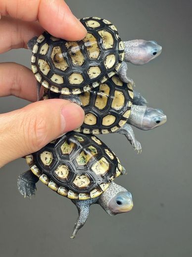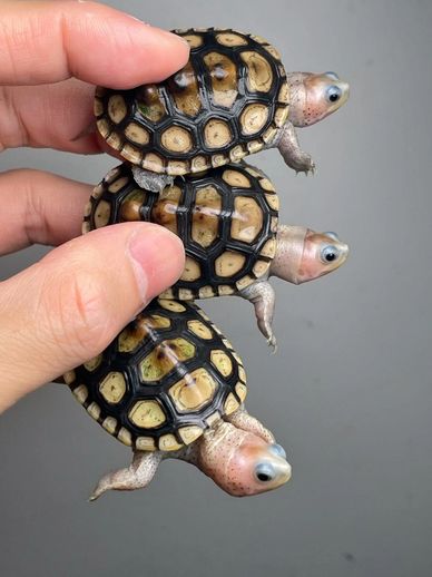 Diamondback Terrapins are probably the most naturally varied species of turtle and all subspecies can be "Concentric" or "Speckled" as well as displaying different skin and carapace colours such as Caramel, Golden, Black Velvet as well as the more specialised colour morphs Pink, Blue and albino. No doubt more interesting variations will come out of selective breeding from Asia and the USA.
